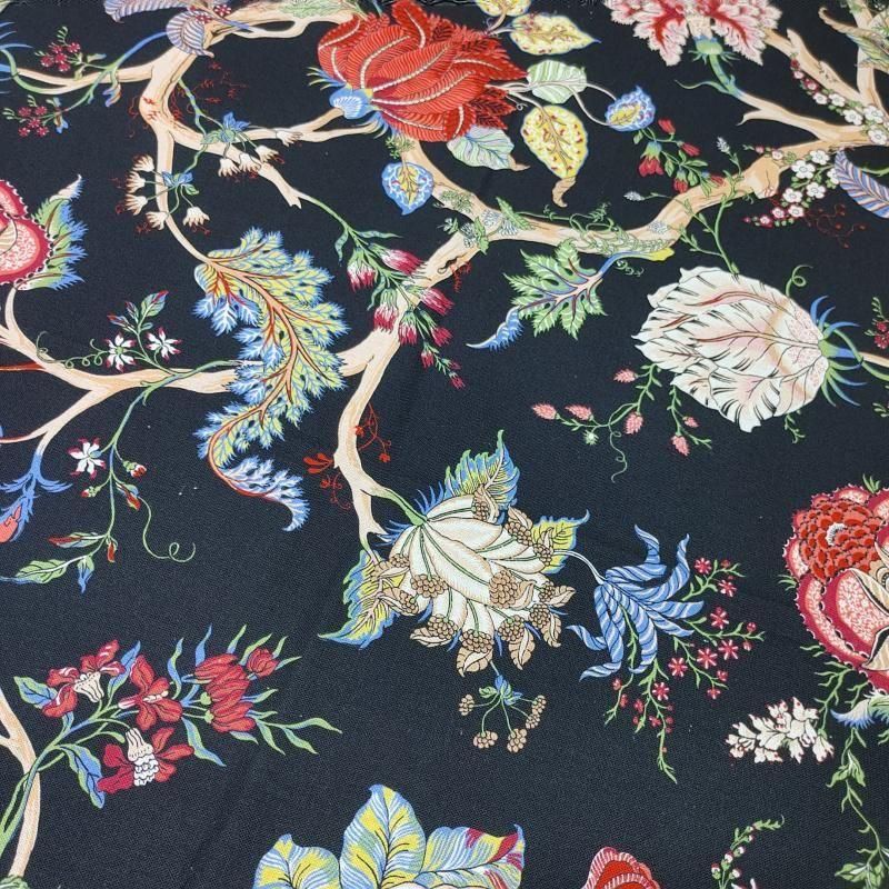 フランスで18世紀から続く伝統的プリント生地で、人物や風景を繊細に描いた“絵画のような布”として知られています。今回は希少なブラックセイラン柄を採用し、落ち着きと高級感のある佇まいに仕上げました。クラシックにもモードにも合わせやすい、特別なテキスタイルです。